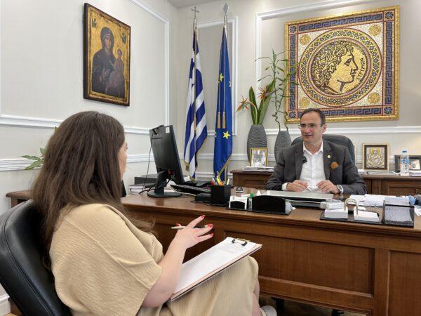 Με ένα φωτεινό χαμόγελο και τη γνωστή του ευγένεια μας υποδέχτηκε ο δήμαρχος Σερρών κ. Αλέξανδρος Χρυσάφης στο δημαρχείο όπου είχαμε την ευκαιρία να συζητήσουμε για τα ζητήματα που αφορούν την τοπική κοινωνία. Μια ειλικρινής ανασκόπηση της μέχρι σήμερα θητείας του αλλά και μια ξεκάθαρη τοποθέτηση για το τι μέλλει γενέσθαι αν επανεκλεγεί τον Οκτώβριου του 2023 αποτέλεσαν τους κεντρικούς άξονες της συνέντευξης.