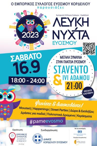 Μεγάλη συναυλία με τους Stavento & Ήβη Αδάμου στην πλατεία Ευόσμου και πάνω από 30 παράλληλα happenings με μουσική και κεράσματα για όλους, στους πεζοδρομημένους κεντρικούς δρόμους!