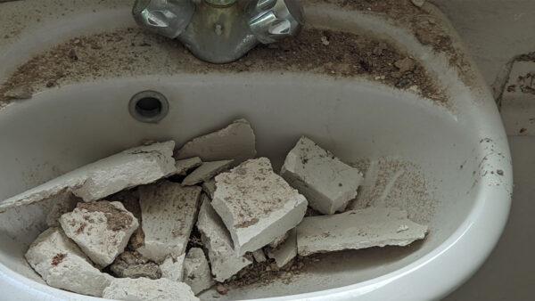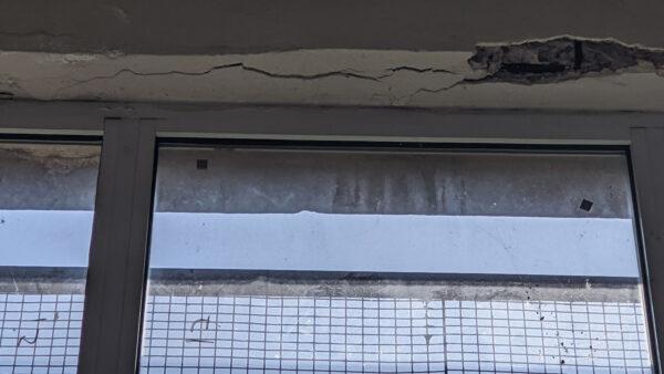 Από τις ρωγμές αποκαλύφθηκαν τα διαβρωμένα και κατασκουριασμένα σίδερα που τη στηρίζουν.