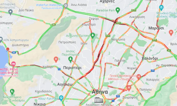 Την ίδια ώρα, σημαντική κίνηση υπάρχει στην άνοδο και στην κάθοδο της Μεσογείων, αλλά και σε σημεία της Λεωφόρου Βασιλίσσης Αμαλίας.