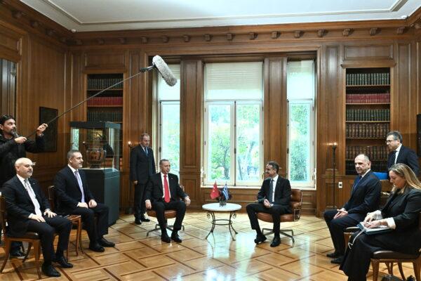 Πριν από λίγο, ο ο Τούρκος πρόεδρος συναντήθηκε με την Πρόεδρο της Δημοκρατίας Κατερίνα Σακκελαροπούλου.