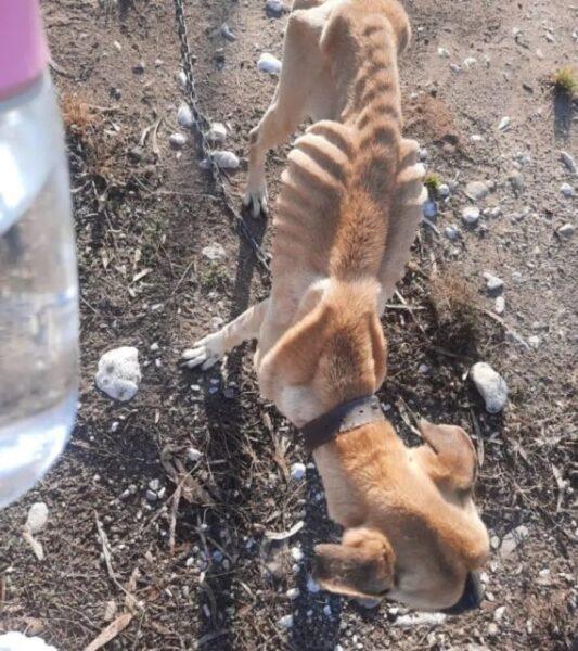 Ακριβώς απέναντι από την παραλία της περιοχής ένα θηλυκό σκυλί ράτσας Boxer δεμένο με χοντρή αλυσίδα. Για την ακρίβεια ένα δείγμα σκυλιού καθώς το ζώο είναι κυριολεκτικά κόκκαλα και δέρμα. Όταν το σηκώσαμε για να το πάρουμε η αλυσίδα του ήταν πιο βαριά από το ίδιο το σκυλί. Καλέσαμε άμεσα την αστυνομία και αυτή τη στιγμή είμαστε στο τμήμα.