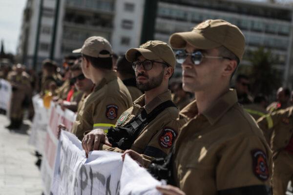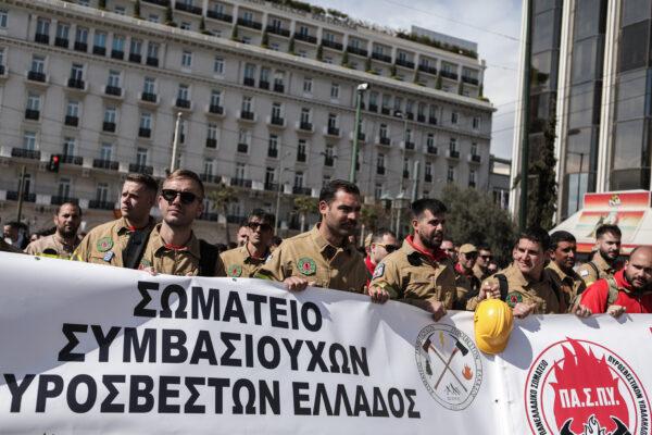 Συγκέντρωση διαμαρτυρίας πραγματοποιήθηκε σήμερα από εποχικούς πυροσβέστες του Σωματείου Συμβασιούχων Πυροσβεστών Ελλάδος στην πλατεία Συντάγματος. Οι εποχικοί πυροσβέστες διεκδικούν, μεταξύ άλλων, την σταδιακή απορρόφηση όλων των εποχικών υπαλλήλων του Πυροσβεστικού Σώματος ανεξαρτήτου ηλικίας με λίστα επιλαχόντων, τα προβλεπόμενα μέσα ατομικής προστασίας, καθώς και ίση ιατρική κάλυψη με το υπόλοιπο προσωπικό του Π.Σ. κατά την περίοδο εργασίας.