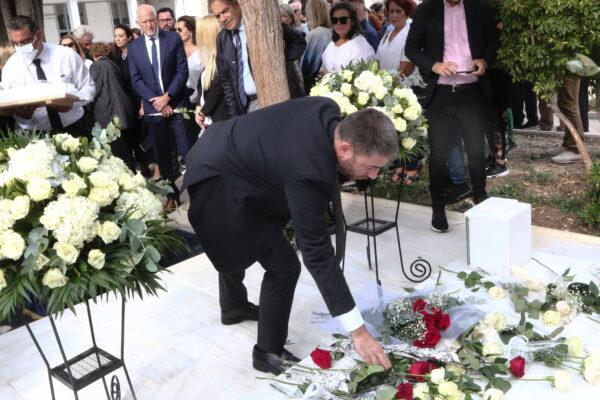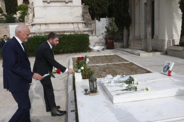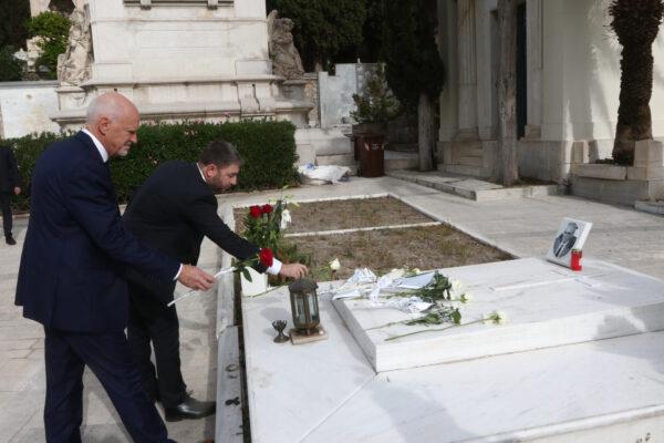Αφού ολοκληρώθηκε η επιμνημόσυνη δέηση, ο Νίκος Ανδρουλάκης και ο Γιώργος Παπανδρέου άφησαν λουλούδι στο μνήμα του Ανδρέα Παπανδρέου.