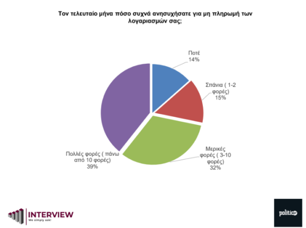 Όσον αφορά τις πάγιες και ανελαστικές δαπάνες, επτά στους δέκα αποκαλύπτουν ότι στα τέλη του μήνα ανησυχούν ότι δε θα μπορέσουν να πληρώσουν τους λογαριασμούς τους.
