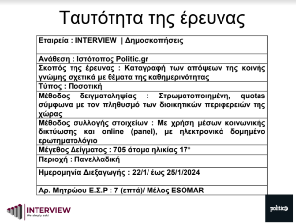 Δείτε επίσης: Δημοσκόπηση Interview για την Politic: Αδιαπραγμάτευτη η πρωτιά της ΝΔ | Όλα πιθανά για τη 2η θέση – Στο παιχνίδι και το ΚΚΕ