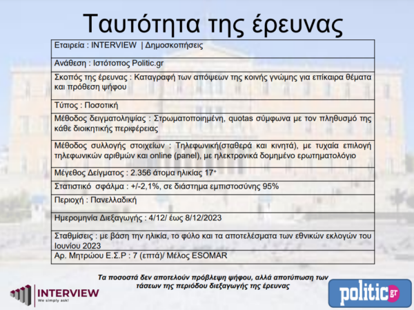 Δείτε επίσης: Δημοσκόπηση Interview για την POLITIC: Διχασμένοι οι Έλληνες για το γάμο ομόφυλων ζευγαριών – «Όχι» στην τεκνοθεσία