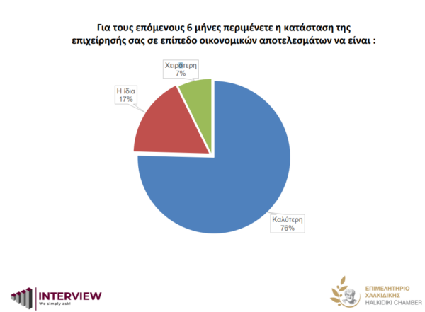 76% δηλώνει ότι περιμένει να είναι καλύτερη η κατάσταση της επιχείρησής του σε επίπεδο οικονομικών αποτελεσμάτων, 17% εκτιμά ότι θα είναι η ίδια, ενώ το 7% αναμένει να είναι χειρότερη.