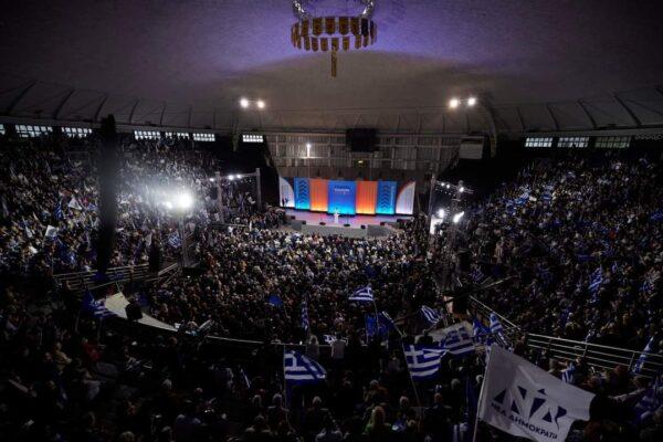 Αποθεωτική ήταν χτες η υποδοχή του Κυριάκου Μητσοτάκη στο Παλέ όπου πραγματοποιήθηκε η τελευταία μεγάλη προεκλογική συγκέντρωση του κυβερνώντος κόμματος στην πόλη
