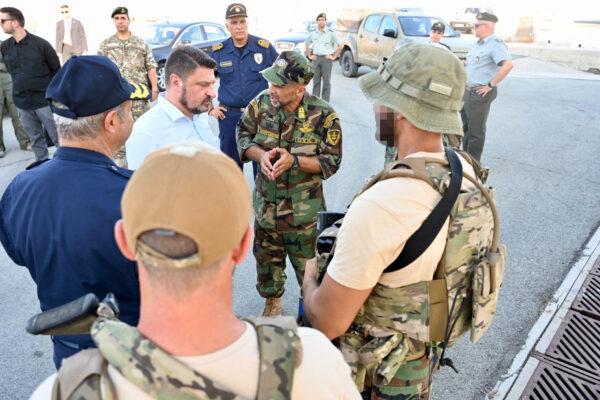 Τον υφυπουργό Εθνικής Άμυνας συνόδευε ο διοικητής της ΕΛΔΥΚ συνταγματάρχης Παναγιώτης Κεραμιδάς, ενώ παρών ήταν και ο ταξίαρχος Χρήστος Σιόρεντας.