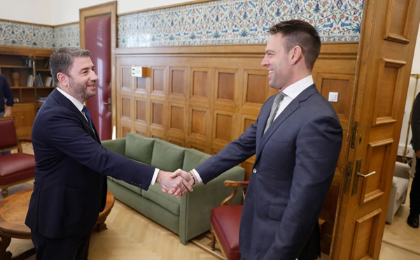 Ο Πρόεδρος του ΠΑΣΟΚ-Κινήματος Αλλαγής, Νίκος Ανδρουλάκης, συναντήθηκε το απόγευμα της Δευτέρας στο γραφείο του στη Βουλή με τον Αρχηγό της Αξιωματικής Αντιπολίτευσης, Στέφανο Κασσελάκη.