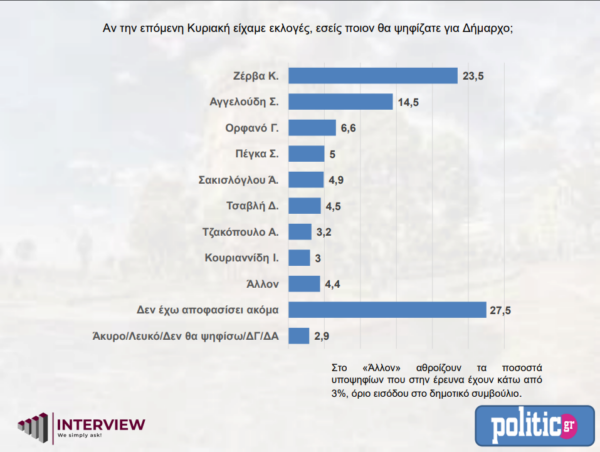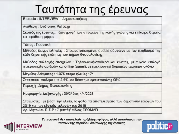 Δείτε επίσης: Δημοσκόπηση Interview για την POLITIC: Αρνητικά κρίνουν το έργο του Κ. Ζέρβα 7 στους 10 Θεσσαλονικείς