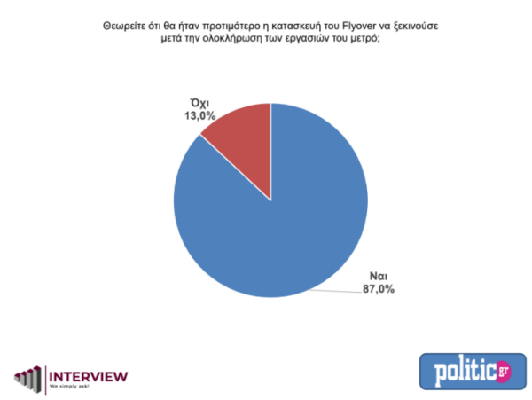 Μάλιστα από αυτούς που απάντησαν θετικά, η συντριπτική πλειοψηφία (87%) πιστεύει πως οι εργασίες θα έπρεπε να ξεκινήσουν μετά την ολοκλήρωση των εργασιών του μετρό.
