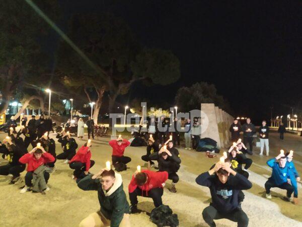 Σε μια συμβολική κίνηση προχώρησαν νεαροί αθλητές λίγο πριν τη λήξη της σιωπηλής πορείας στη μνήμη του 19χρονου οπαδού του Άρη Άλκη Καμπανού.