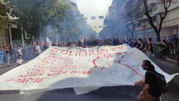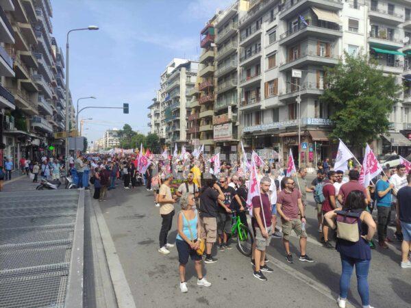 Ήδη από το πρωί πλήθος κόσμου ανταποκρίθηκε στο κάλεσμα των εργατικών σωματείων, προκειμένου να εκφραστεί δυναμικά η αντίθεση σε οποιοδήποτε αντιλαϊκό νομοσχέδιο πρόκειται να έρθει προς ψήφιση στη Βουλή. Περίπου στις 12 το μεσημέρι από το Άγαλμα του Βενιζέλου στην Εγνατία ξεκίνησε η πορεία, με τους διαδηλωτές να κινούνται προς την Αγία Σοφία, από εκεί συνέχισαν στην Τσιμισκή και από την Ίωνος Δραγούμη κατέληξαν στο συμπέρασμα ότι Υπουργείο Μακεδονίας Θράκης.