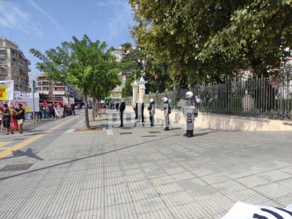 Ειδική μνεία πρέπει να γίνει στη στάση διαμαρτυρίας που πραγματοποιήθηκε έξω από το Αμερικανικό Προξενείο, επί της οδού Τσιμισκή, όπου οι διαδηλωτές κράτησαν πανό αλληλεγγύης προς τους εργαζόμενους πολύ γνωστών εταιρειών του εξωτερικού, ενώ ακούστηκαν αντιπολεμικά συνθήματα. Μάλιστα, περίπου δέκα καπνογόνα έδωσαν ακόμα πιο δυναμική χροιά στην κίνηση του κόσμου, με τα μηνύματα προς τις ΗΠΑ να είναι πολλά.
