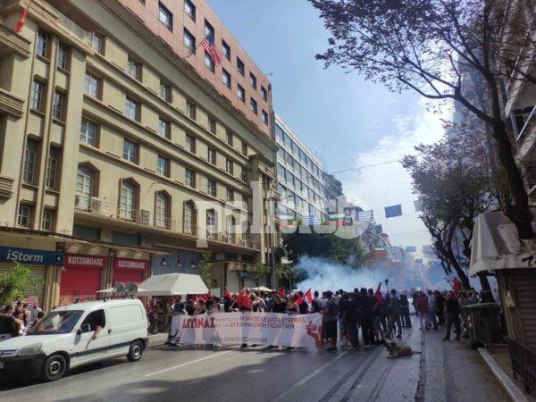 Σε εκείνο το σημείο η πορεία χωρίστηκε σε δύο μέρη, με τα εργατικά σωματεία και τα συνδικάτα -κυρίως- να συνεχίζουν προς το Εργατικό Κέντρο Θεσσαλονίκης, ενώ οι φοιτητικοί σύλλογοι, οι καθηγητές, καθώς και οι ομάδες από τον ευρύτερο αντιεξουσιαστικό χώρο ολοκλήρωσαν την κινητοποίησή τους στο ΥΜΑΘ.