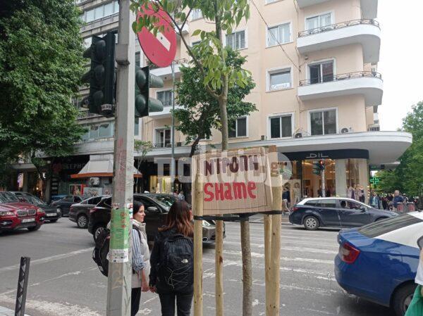 Με πανό και πλακάτ στα χέρια που έγραφαν τη λέξη “ντροπή” συλλογικές οργανώσεις της Θεσσαλονίκης έδειξαν την αντίθεση τους στην μαζική κοπή δέντρων στην πόλη της Θεσσαλονίκης.