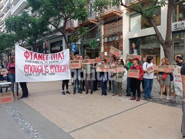 Διαμαρτυρία πραγματοποιήθηκε το απόγευμα της Τρίτης (30/5) στη συμβολή των οδών Τσιμισκή με Αγίας Σοφίας με πρωτοβουλία του δικτύου για το αστικό πράσινο “SOSε τα Δέντρα”.