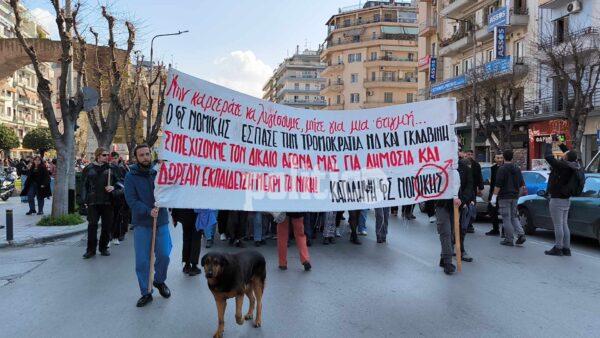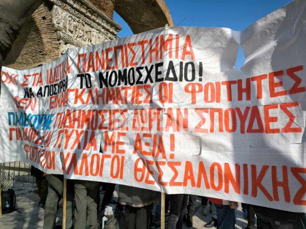 Η πορεία άρχισε πριν από λίγα λεπτά από την Καμάρα με κατεύθυνση προς δυτικά. Στην πορεία ακούγονται μεταξύ άλλων συνθήματα κατά του κοσμήτορα του ΑΠΘ.