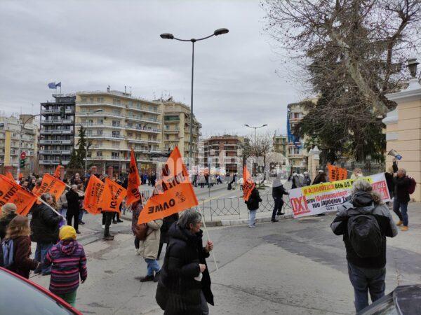 Τα σωματεία, οι συλλογικότητες και τα συνδικάτα ξεκίνησαν από το Άγαλμα Βενιζέλου, όπου αρχικά έγιναν ομιλίες και στη συνέχεια διαδήλωσαν σε κεντρικούς δρόμους της Θεσσαλονίκης. Η πορεία πέρασε από την Αγία Σοφία, συνέχισε στην Τσιμισκή και κατέληξε στον ΟΣΕ.