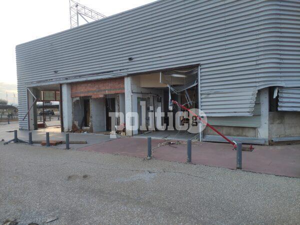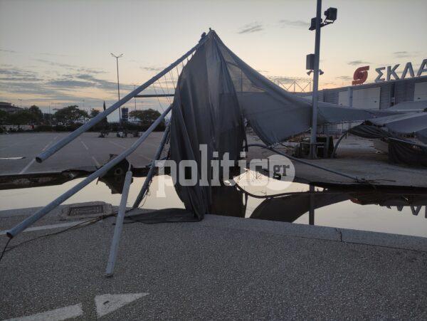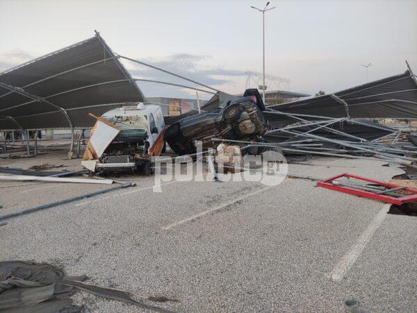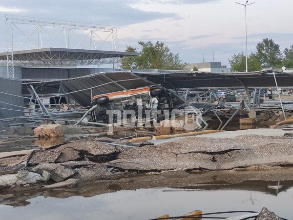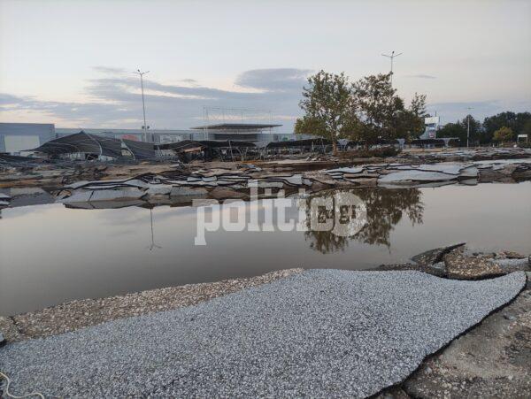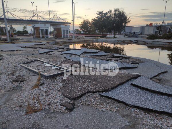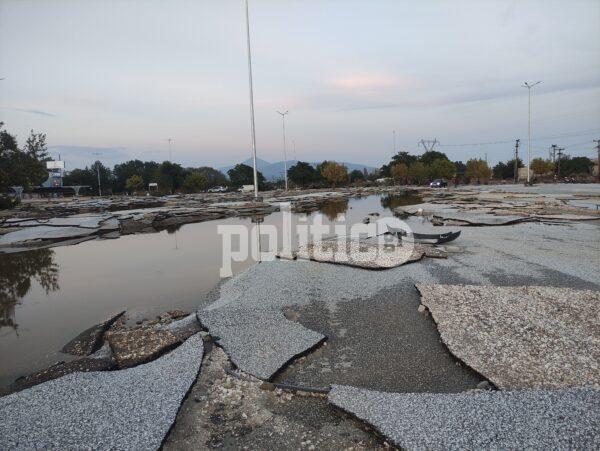 Συγκεκριμένα, κάτω από τις Εργατικές εδώ και δεκαετίες υπάρχει σούπερ μάρκετ γνωστής αλυσίδας, σε ένα πολύ μεγάλο οικόπεδο με πάρκινγκ, βενζινάδικο και άλλα καταστήματα. Το νερό τα είχε σκεπάσει όλα και οι καταστροφές είναι τεράστιες. Έσπασαν τζαμαρίες από το κτήριο, διαλύθηκαν τα αντιηλιακά καλύμματα στον χώρο στάθμευσης των ΙΧ, ενώ το συγκλονιστικότερο όλων είναι ότι η άσφαλτος υποχώρησε και ξεκόλλησαν ολόκληρα κομμάτια δρόμου.