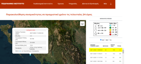 Σεισμός 3,3 Ρίχτερ σημειώθηκε πριν από λίγο στην Πρέβεζα.