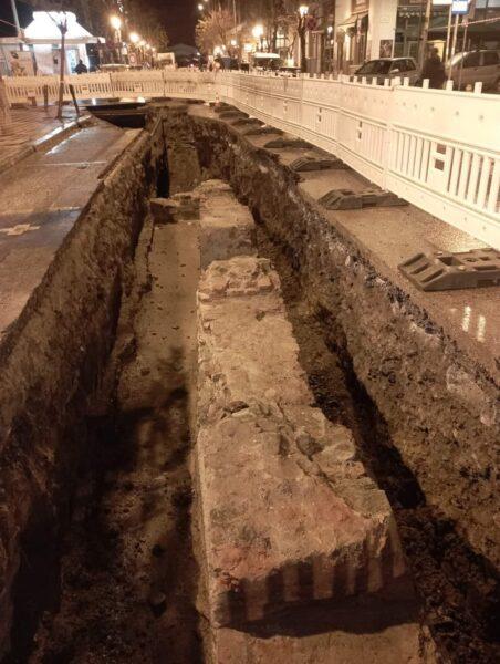 Οι εργασίες της ΕΥΑΘ στην Ίωνος Δραγούμη έφεραν στην επιφάνεια ένα τείχος του 20ου αιώνα, το οποίο όπως φαίνεται αποτελούσε θεμέλιο κτιρίου.