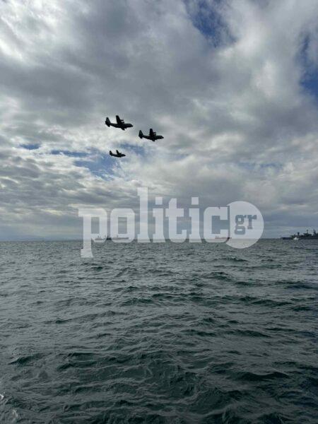 Στην εξέδρα των επισήμων βρίσκονται ο Πρόεδρος της Δημοκρατίας Κωνσταντίνος Τασούλας, ο Πρωθυπουργός Κυριάκος Μητσοτάκης, ο Υπουργός Άμυνας Νίκος Δένδιας, καθώς και πολιτικοί και στρατιωτικοί αξιωματούχοι. Αυξημένα είναι τα μέτρα ασφαλείας στην παραλιακή ζώνη και στους γύρω δρόμους, ενώ η Τροχαία Θεσσαλονίκης έχει ανακοινώσει κυκλοφοριακές ρυθμίσεις έως το πέρας της εκδήλωσης.