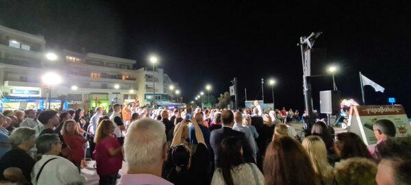 Κατεβαίνοντας από το βήμα χάθηκε στις αγκαλιές των άνω των χιλίων συγκεντρωθέντων, με τις διαβεβαιώσεις νίκης, να ακούγονται απ’ άκρου σ άκρον στην πανέμορφη παραλία της Περαίας, που έσφυζε από τον κόσμο.