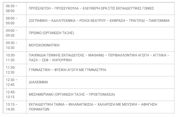Παρέχεται στα παιδιά ένα πλήρες διατροφικά μηνιαίο διαιτολόγιο.