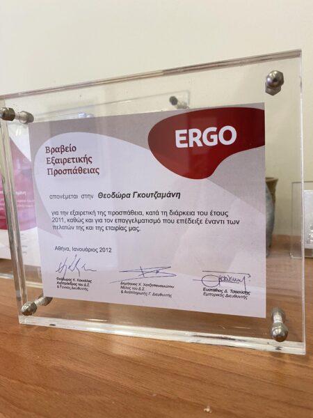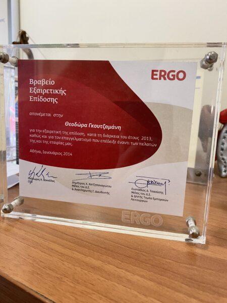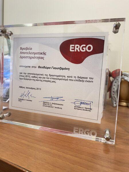 Επιβραβεύσεις: Η κα. Θεοδώρα Γκουτζαμάνη έχει λάβει διακρίσεις από τις κορυφαίες ασφαλιστικές εταιρείες όπως είναι η ERGO, κατακτώντας πολλές φορές βραβεία. Ενδεικτικά της έχει απονεμηθεί δις βραβείο αποτελεσματικής δραστηριότητας και βραβείο εξαιρετικής επίδοσης εξίσου δύο φορές.