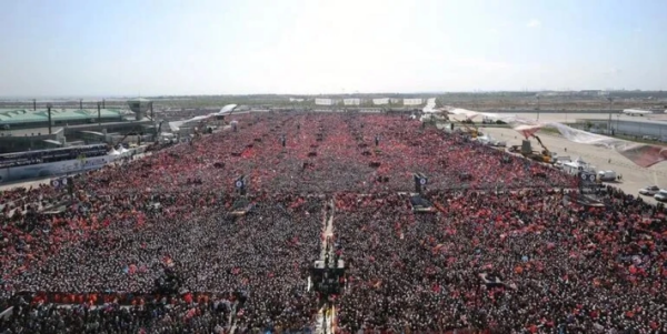 Μπροστά σε ένα τεράστιο πλήθος μίλησε την Κυριακή ο Ρετζέπ Ταγίπ Ερντογάν, μία εβδομάδα πριν από τις προεδρικές εκλογές.