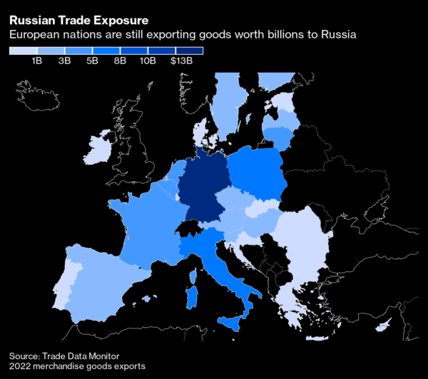Ορισμένοι από τους βασικούς συμμάχους της Ουκρανίας, μεταξύ των οποίων των ΗΠΑ, εξετάζουν το ενδεχόμενο να προχωρήσουν προς μία πλήρη απαγόρευση της πλειοψηφίας σχεδόν των εξαγωγών στη Ρωσία, αναβαθμίζοντας σημαντικά την οικονομική πίεση στον Πρόεδρο Βλαντιμίρ Πούτιν για τον πόλεμο που διεξάγει στην Ουκρανία, σύμφωνα με το Βloomberg