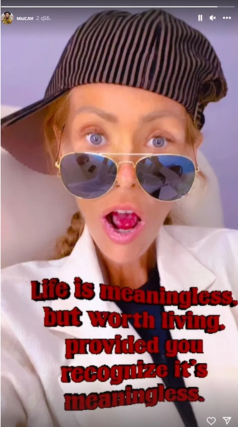 «Η ζωή δεν έχει νόημα, αλλά αξίζει να τη ζεις, αρκεί να αναγνωρίζεις ότι δεν έχει νόημα», έγραψε η 39χρονη influencer σε ένα Instagram story πριν από δύο εβδομάδες.