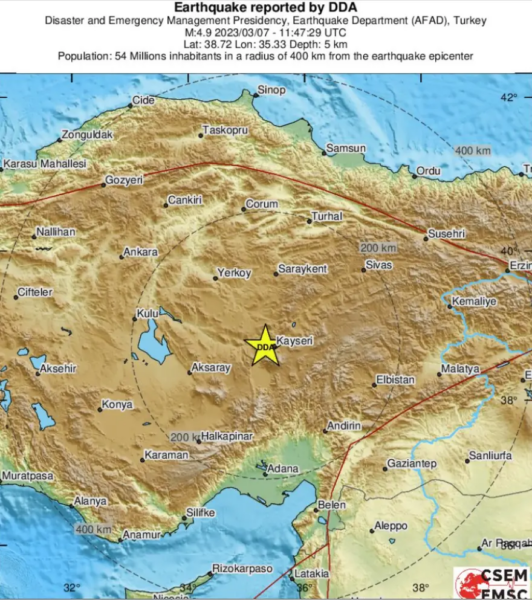 Νέος σεισμός σημειώθηκε στην κεντρική Τουρκία μεγέθους 4,9 βαθμών της κλίμακας Ρίχτερ σύμφωνα με το Ευρωμεσογειακό Σεισμολογικό Κέντρο.