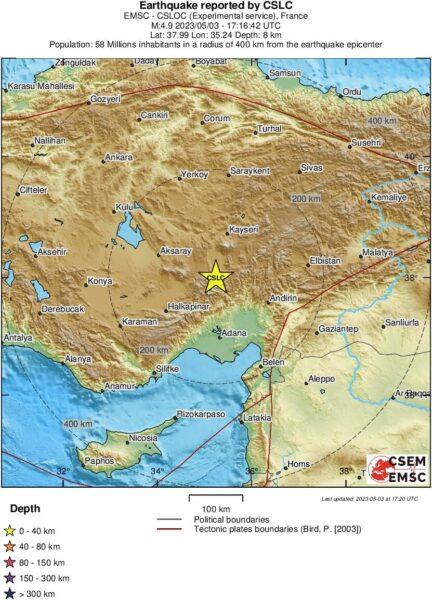 Ο σεισμός είχε εστιακό βάθος 10 χλμ. και το επίκεντρό του εντοπίζεται 15 χλμ ανατολικά της πόλης Göksun και 58 χλμ βόρεια της πόλης Καχραμανμαράς.