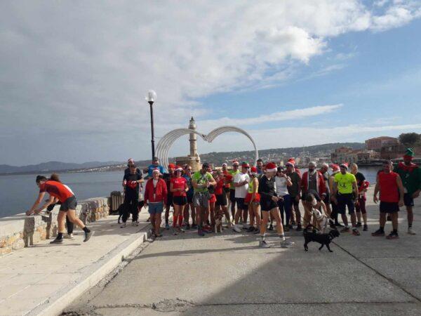 Μικροί και μεγάλη ντυμένοι με χριστουγεννιάτικη στολή με πολλή χαρά ακολούθησαν είτε τρέχοντας είτε περπατώντας τη διαδρομή που ξεκίνησε από την παραλία και κατέληξε στο Ενετικό λιμάνι των Χανίων.