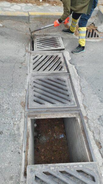 Ειδικό συνεργείο απομακρύνει από τα φρεάτια φύλλα, χώματα και φερτά υλικά, με στόχο να διατηρούνται καθαρά και να διασφαλίζεται η ομαλή απορροή των νερών από τις βροχές.