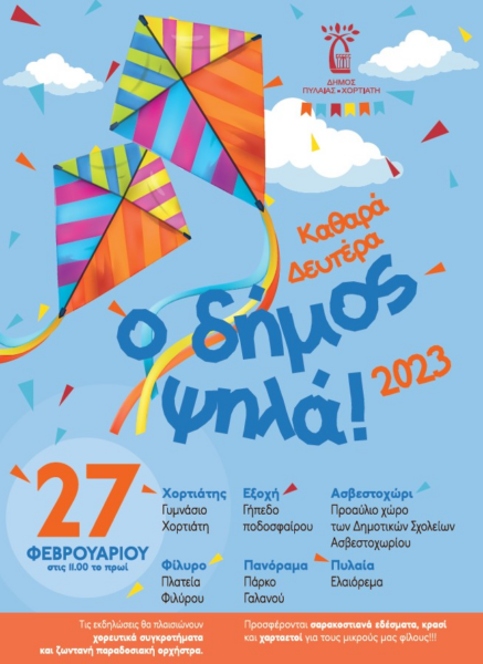 Ραντεβού με τους δημότες του δήμου, αλλά και τους Θεσσαλονικείς που επιθυμούν να γιορτάσουν «εκτός των τειχών» την Καθαρά Δευτέρα και να συμμετέχουν σε ένα παραδοσιακό αλλά και ποιοτικό γλέντι, δίνει φέτος ο Δήμος Πυλαίας – Χορτιάτη, διοργανώνοντας τα «Κούλουμα 2023», με τίτλο «Ο δήμος ψηλά!»