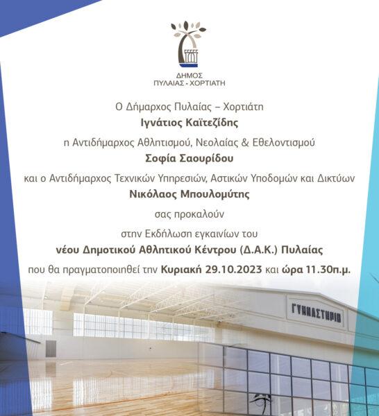 Εγκαίνια του αναβαθμισμένου ενεργειακά Δ.Α.Κ. Πυλαίας Κυριακή 29 Οκτωβρίου 11.30 π.μ.