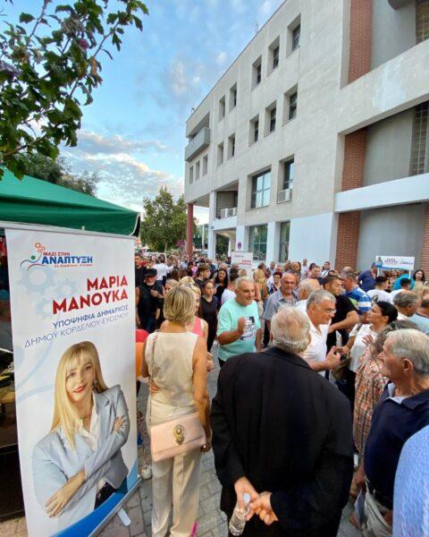 Στις 8 Οκτωβρίου παίρνουμε τις ζωές μας στα χέρια μας. Είμαστε ψηφοδέλτιο ευθύνης και νίκης. Ευθύνης γιατί κοιτάζουμε τους συνδημότες μας στα μάτια και νίκης γιατί είμαστε δύναμη ρήξης με το χθες. Γιατί κάθε ένας και κάθε μια από εμάς ξέρει τι θα πει καθημερινότητα, μόχθος, κόπος, αγωνία για το σήμερα. Ξέρουμε ποιές είναι οι ανάγκες του τόπου μας, των γειτονιών μας. Ήμασταν εδώ πριν τις εκλογές και θα είμαστε και μετά τις εκλογές, γιατί η ζωή μας είναι συνυφασμένη με τον δήμο Κορδελιού-Ευόσμου» κατέληξε η Μαρία Μανούκα στον σύντομο χαιρετισμό της.
