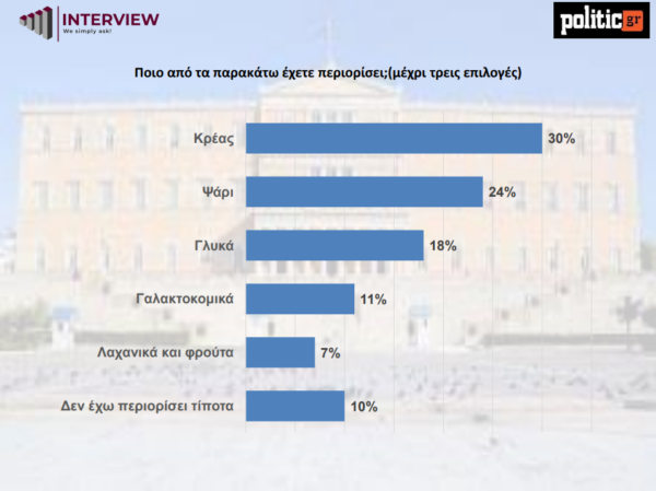 Μόλις 10% των ερωτηθέντων αναφέρει ότι δεν έχει περιορίσει κανένα είδος τροφίμο.