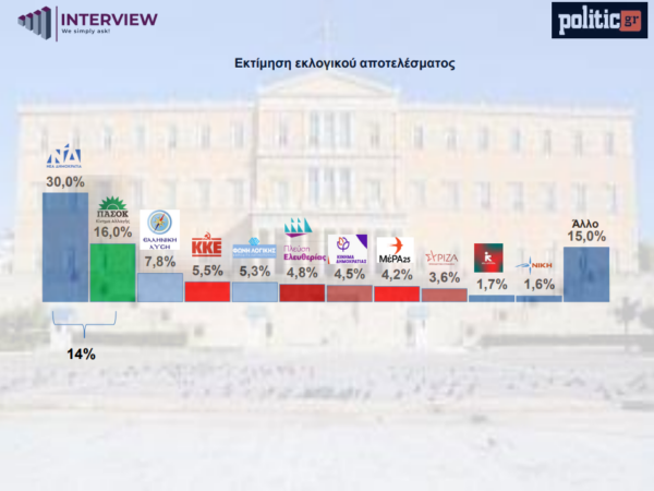 Η νέα δημοσκόπηση της Interview για την POLITIC καταγράφει ένα τοπίο χωρίς μεγάλες μεταβολές στα κομματικά ποσοστά, αλλά με μια αξιοσημείωτη τάση: σχεδόν ένας στους πέντε ψηφοφόρους δηλώνει αναποφάσιστος, στοιχείο που μπορεί να αναδιαμορφώσει την εικόνα των επόμενων μετρήσεων.