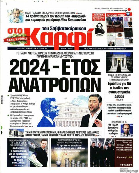 Διαβάστε τα πρωτοσέλιδα από τις πολιτικές εφημερίδες, σήμερα 30/12/2023.