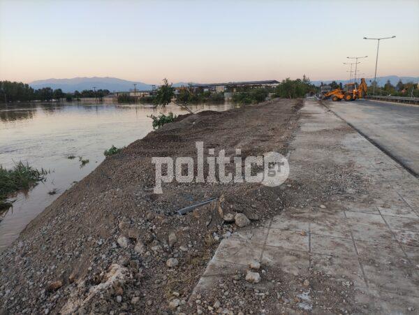 Από χθες, λοιπόν, τα συνεργεία βρέθηκαν στο ανάχωμα, καλύπτοντας τις τρύπες που δημιουργήθηκαν από τον μεγάλο όγκο του νερού. Οι πιέσεις προς την εσωτερική περιφερειακή οδό της Λάρισας ήταν μεγάλες, με το 112 να ηχεί για τους κατοίκους της συνοικίας, ώστε να είναι έτοιμοι για παν ενδεχόμενο.