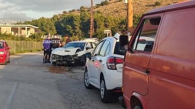 Ένα σοβαρό τροχαίο ατύχημα με σύγκρουση δύο αυτοκινήτων σημειώθηκε λίγο μετά τις 16:00 το απόγευμα στην Τίρυνθα Αργολίδας, στη διασταύρωση με την οδό που έρχεται από την Αθήνα.