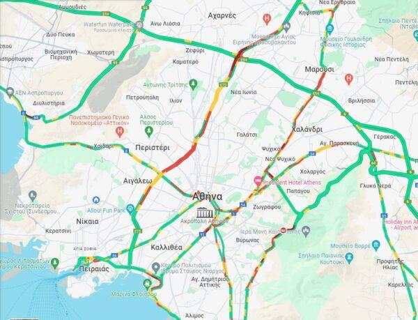 Παράλληλα, κυκλοφοριακή συμφόρηση παρουσιάζεται και στο κέντρο της Αθήνας, κυρίως στις Λεωφόρους Αλεξάνδρας, Μεσογείων και Βασιλίσσης Σοφίας.