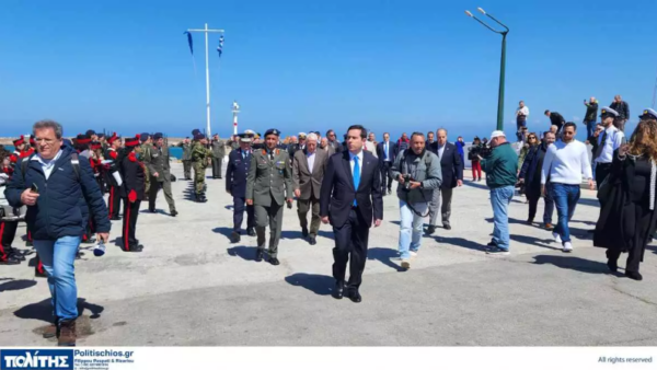 Στην τελετή έπαρσης, έδωσαν το «παρών» ο Βουλευτής Χίου και Υπ. Μετανάστευσης Νότης Μηταράκης, ο Περιφερειάρχης Βορείου Αιγαίου Κώστας Μουτζούρης καθώς και ο Δήμαρχος Χίου Σταμάτης Κάρμαντζης.
