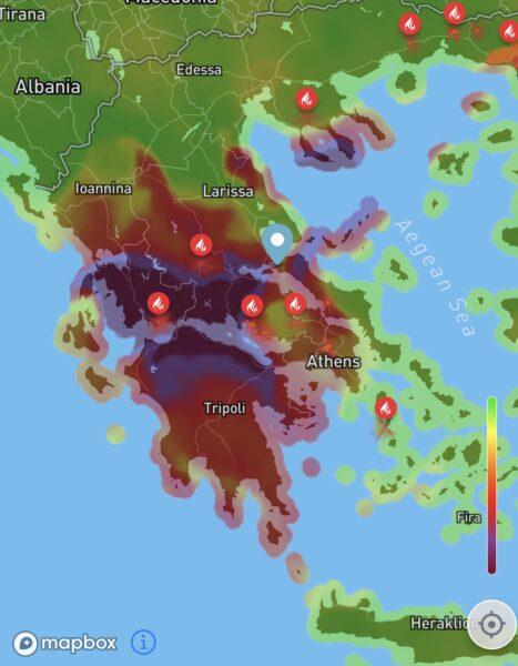 Με την παραπάνω επισήμανση ο διευθυντής του Ινστιτούτου Περιβάλλοντος του Εθνικού Αστεροσκοπείου, Νίκος Μιχαλόπουλος, παρουσίασε το ζοφερό αποτύπωμα της πυρκαγιάς στη Φυλή, επισημαίνοντας ότι ιδιαίτερα επιβαρυμένη είναι η δυτική Αττική και ο Πειραιάς, ενώ σωματίδια από τις πυρκαγιές στον Έβρο “ταξίδεψαν” ως τα νησιά του Ιονίου.